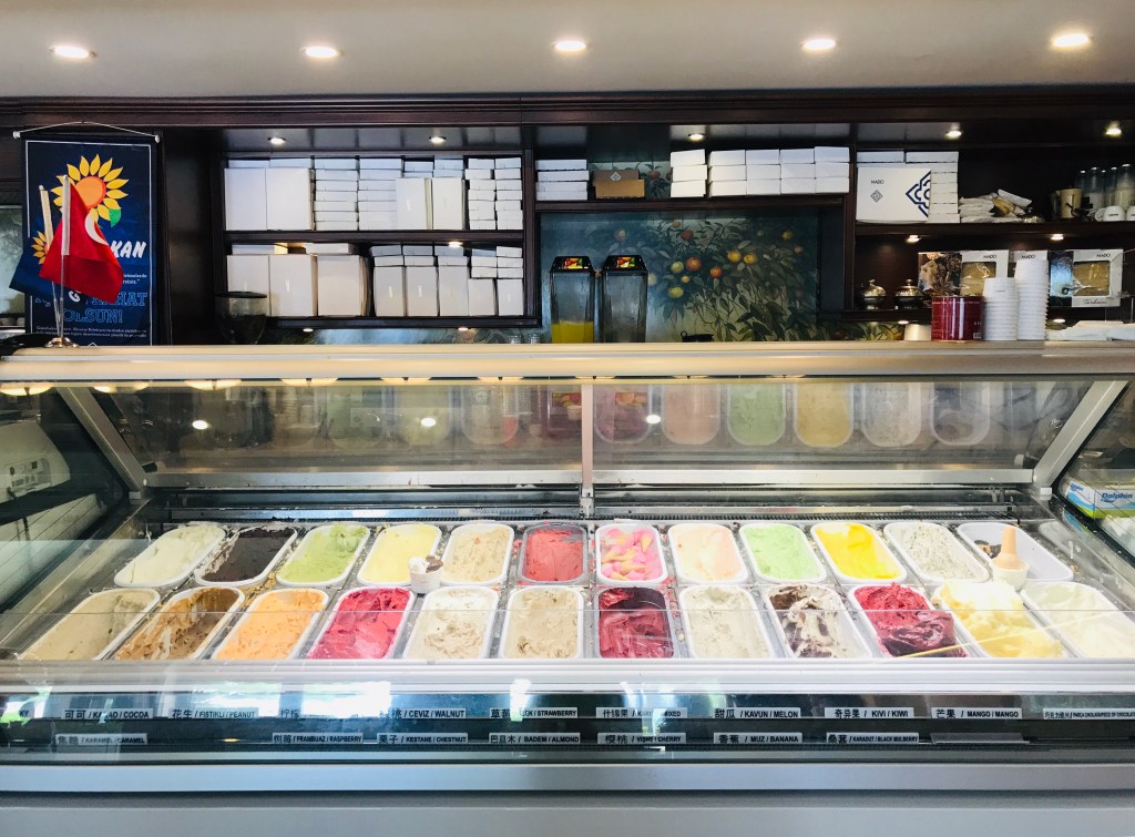 When you hear Turkish food, what are the first things you remember? Dürüm? Kebab? what else? Yes, those are famous Turkish foods you always get in Turkish Restaurant. But when you are visiting Turkey, there are other foods that you should try too! The first food I miss from my travel to Turkey is Mado, ice cream. In this ice cream salon, you will find exotic flavors such as banana, peanut, melon, orange and more! Mado ice cream is made of goat’s milk, thus its texture is very silky, slightly denser compare to Italian gelato, but softer than average ice cream that feels so good when you lick it!
