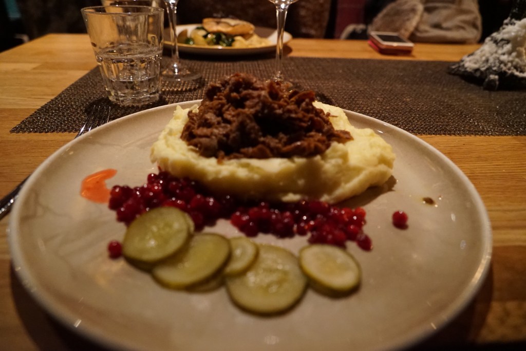 If you are looking for Halal or Kosher food in Finland, make sure you did a good research because most of the foods in Finland consist of reindeer meat, bear meat, and salmon. In Finland, they breed reindeer just like cow or lamb for transportation and for food. I tried both reindeer meat and bear meat. Personally, I prefer reindeer meat, because bear meat it too smelly and rough. The texture of Reindeer meat is almost like goat meat, but it is less smelly. Usually, reindeer meat is combined with Lingonberry. It is very tasty as it is a combination of saltiness from reindeer meat and sweet-sour from Lingonberry.