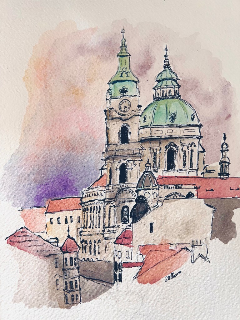 Prague St Nicholas Church Illustrations Prague St Nicholas Church on pen and watercolor by Stellasono (c) January 2022
